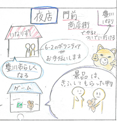 児童らは社会科や総合学習などの時間に、豊川稲荷の門前商店街の店主らに話を聞き、B-1会場でも来場者の声を拾ったといいいます。