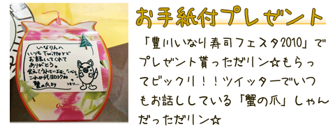送ってもらった物はこのページと「いなり寿司で豊川市をもりあげ隊公式ホームページ」、観光案内所でお披露目するだリン☆よ♪