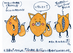 当初選ばれたいなりんの目は「まん丸」、手は黒かったのですが、ゆるキャラ(着ぐるみ)を作成する都合上優勝作品から少し変えて今の形に至りました。 ![]() |